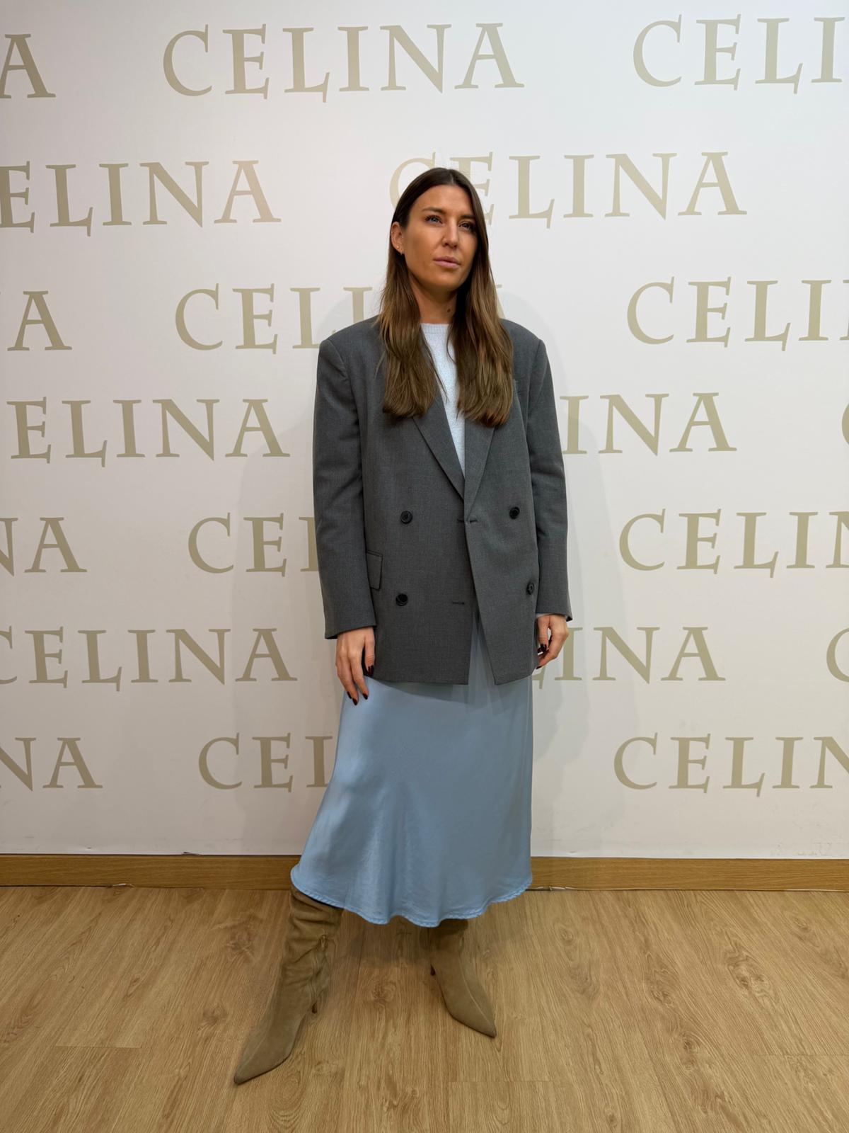 Blazer cruzada de cuatro botones. Bolsillos laterales con solapa. Bolsillo en la esquina superior del pecho. Forro interior a color.