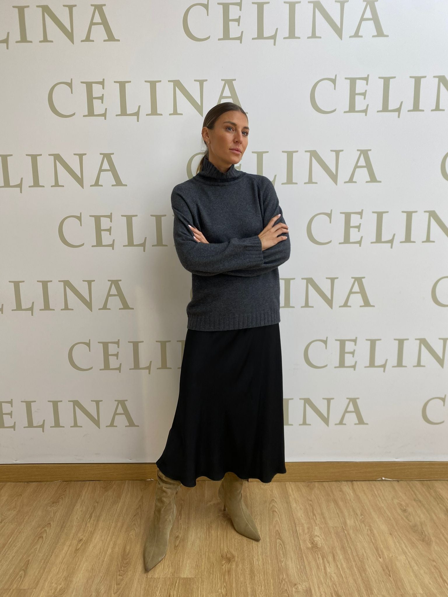 Falda con goma en la cintura. Silueta evasé. Satinado.