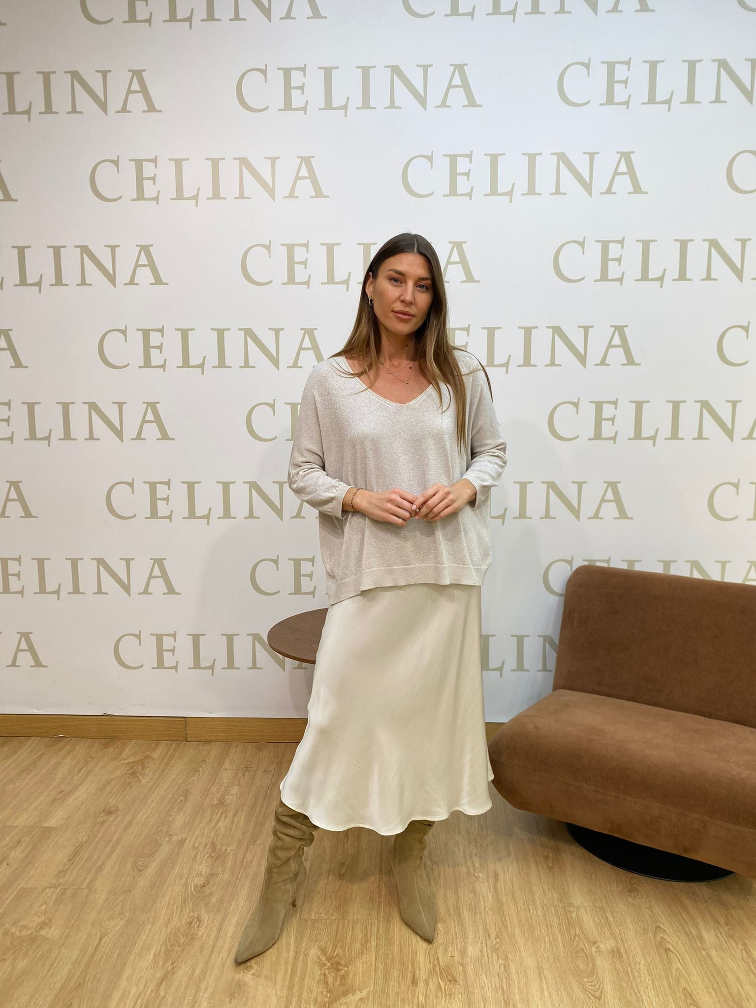 Falda con goma en la cintura. Silueta evasé. Satinado.